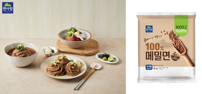 면·소스 전문기업 면사랑이 메밀과 물만으로 만든 냉동 메밀면 '100% 메밀면'을 출시했다.