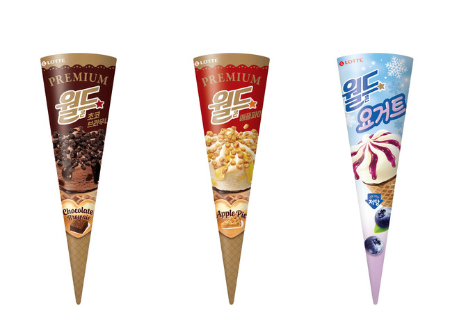 신제품은 △'프리미엄 월드콘 애플파이' △'프리미엄 월드콘 초코브라우니' △저당 '월드콘 요거트' 등 3종이다.