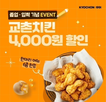 교촌치킨을 운영하는 교촌에프앤비(339770)가 3월1일까지 교촌치킨앱 이용 고객을 대상으로 '한마리' 메뉴 4000원 할인 프로모션을 진행한다.