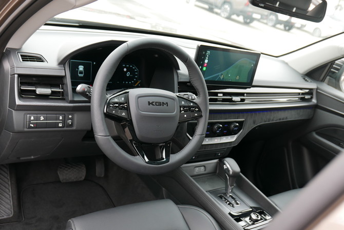 실내는 기대 이상이다. 12.3인치 디지털 클러스터와 KGM 링크 디스플레이는 시인성이 뛰어나고, 아테나 3.0 GUI는 직관적이다. 전자식 변속 레버(SBW)와 전자식 파킹 브레이크(EPB)는 센터콘솔 공간 활용성을 넓히며 현대적 감각을 더한다.