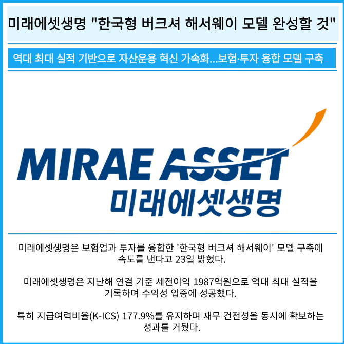 [카드] 미래에셋생명 "한국형 버크셔 해서웨이 모델 완성할 것"