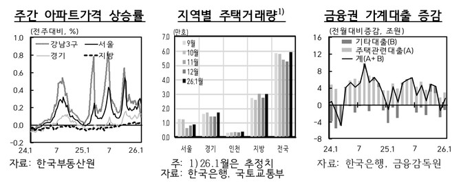 금융안정 측면에서는 수도권 주택가격 상승과 취약부문 리스크를 지적했다. 서울 아파트 가격은 1월 들어 연율 환산 10%를 상회하는 상승세를 보였으며, 강남 3구보다 서울 외곽과 경기 지역으로 상승 폭이 확산되는 모습이다.