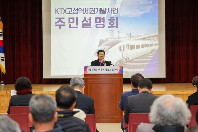 고성군은 지난 2월24일 고성읍행정복지센터에서 지역 주민과 관계자 등이 참석한 가운데 KTX고성역세권개발사업 주민설명회를 개최했다고 25일 밝혔다.