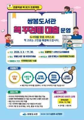 여수시립쌍봉도서관은 3월부터 초등학생을 대상으로 '책 꾸러미 대출' 프로젝트를 시작한다. 이번 사업은 학년별 교과 연계 도서를 꾸러미 형태로 제공해 올바른 독서 습관 형성과 문해력 향상을 돕기 위해 추진됐다.