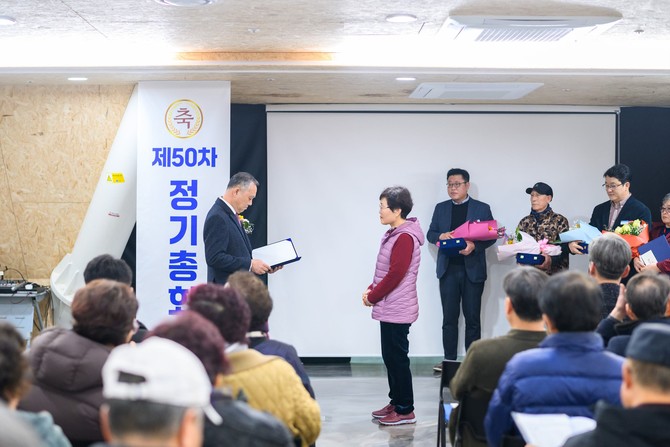 총회는 개회선언과 국민의례를 시작으로 시장 활성화에 기여한 유공자에 대한 시상식이 진행되었다. 특히 ‘인재육성재단 장학금 기탁식’이 함께 열려 지역사회에 따뜻한 온기를 전하는 뜻깊은 시간이 마련됐다.