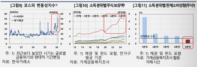 하지만 증시 변동성이 확대된 데다 주가 상승의 수혜가 고소득층에 집중된 점을 고려하면 실제 소비 파급효과는 이보다 낮을 가능성이 높다고 내다봤다. 고소득층의 금융자산 한계소비성향은 약 0.8%로 전체 평균을 소폭 밑돈다.
