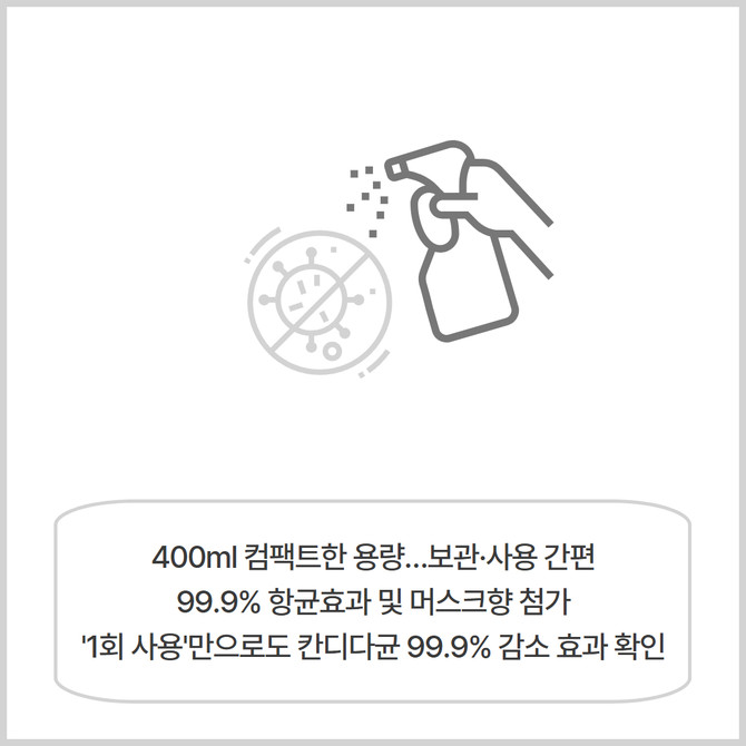 1회 사용으로 칸디다균 99.9% 감소 항균 효과 확인