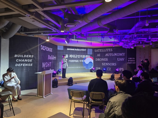 행사는 지난 26일 서울 강남구 팁스타운 라운지에서 열렸다. 이번 행사의 드레스코드는 정장 대신 '후드티'였다. 보다 부드러운 분위기 속에서 경직된 방산 업계 이미지를 환기하려는 취지다.