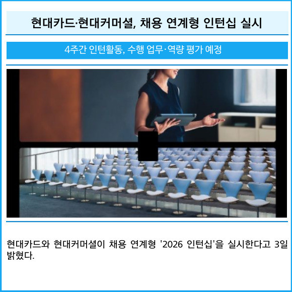 [프라임경제] 현대카드와 현대커머셜이 채용 연계형 '2026 인턴십'을 실시한다고 3일 밝혔다.