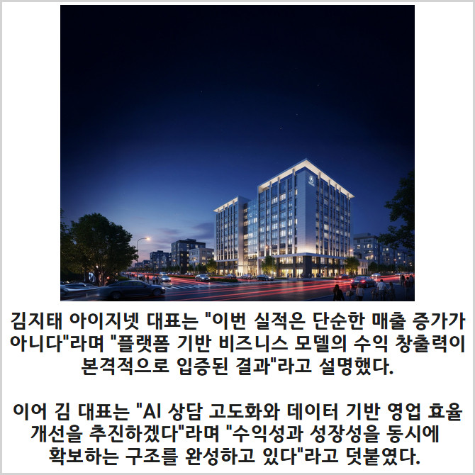 [프라임경제] 아이지넷(462980, 대표 김지태)은 2025년 창사 이래 최대 실적을 기록했다고 3일 밝혔다.