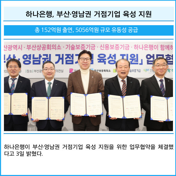 [프라임경제] 하나은행이 부산·영남권 거점기업 육성 지원을 위한 업무협약을 체결했다고 3일 밝혔다.