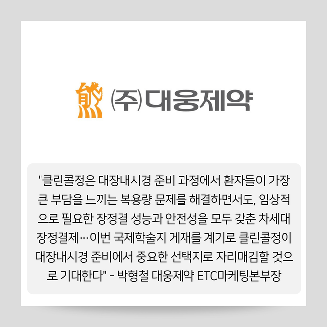 [카드] 대웅제약, '클린콜정' 임상 3상 결과 국제학술지 게재
