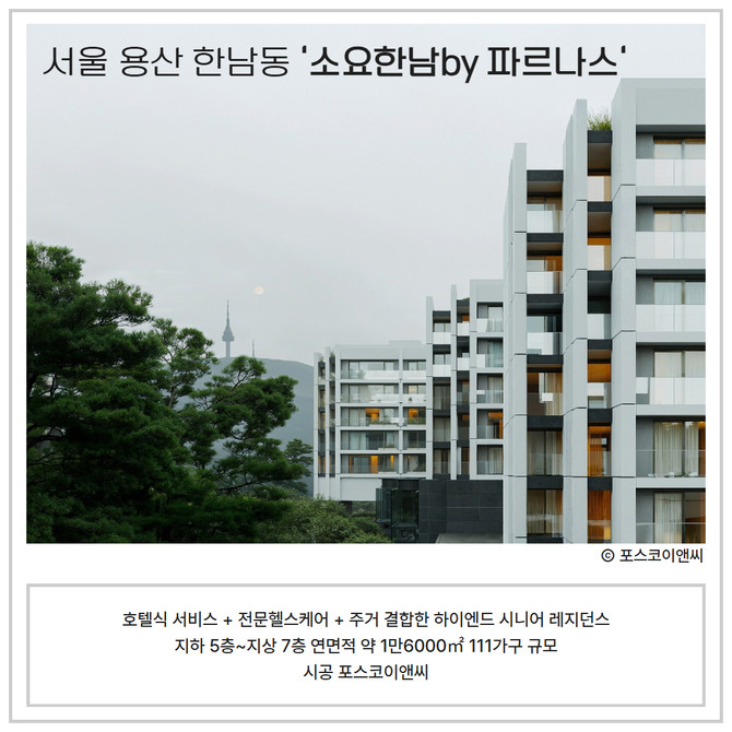 [프라임경제] 서울 '전통 부촌'이자 '지리적 중심지' 용산구 한남동에 호텔식 서비스와 전문헬스케어, 주거가 결합된 하이엔드 시니어 레지던스 소요한남by 파르나스가 상반기 공급을 앞두고 있어 관심이 쏠리고 있다.