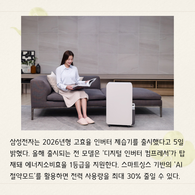[카드] 삼성전자, 고효율 인버터 제습기 선봬