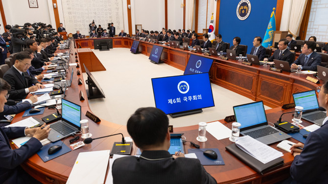 이 대통령은 이날 청와대에서 주재한 임시국무회의에서 "중동 지역 위기가 고조되면서 글로벌 안보 환경이 악화되고 있다"며 "세계 각국의 금융시장이 큰 불확실성에 직면한 가운데 에너지 수급, 수출입 불안으로 경제 산업과 민생 전반에 상당한 어려움이 예상된다"며 이같이 당부했다.