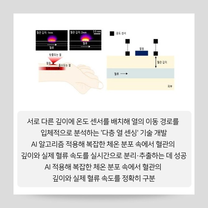 [프라임경제] KAIST 전기및전자공학부 권경하 교수 연구팀이 딥러닝(AI)과 다층 열 센싱 기술을 결합한 무선 웨어러블 혈류 측정 시스템을 개발했다고 5일 밝혔다.