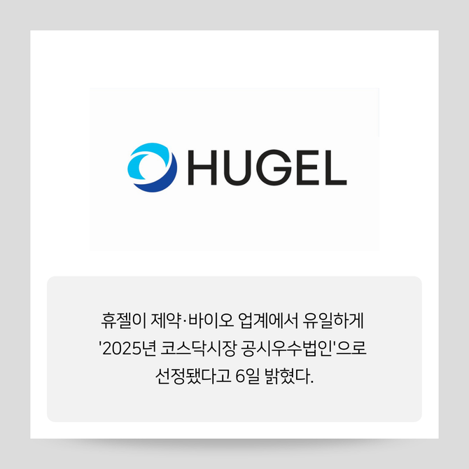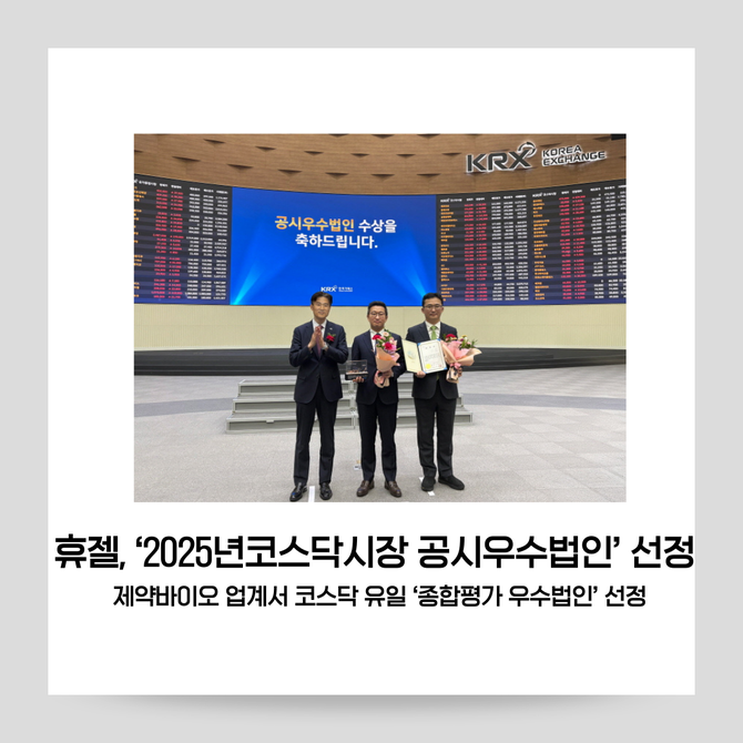 [프라임경제] 휴젤(145020)이 제약·바이오 업계에서 유일하게 '2025년 코스닥시장 공시우수법인'으로 선정됐다고 6일 밝혔다.
