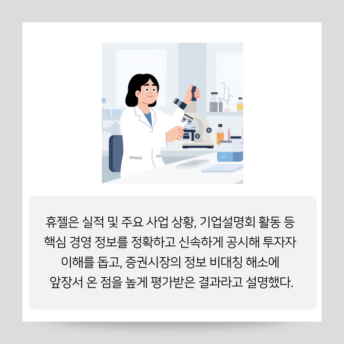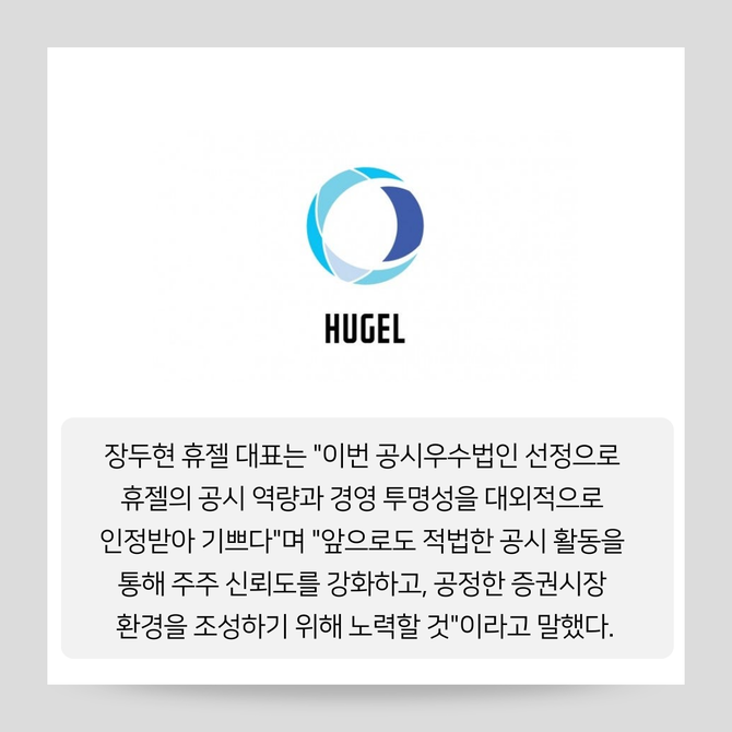 [카드] 휴젤, '코스닥시장 공시우수법인' 선정…업계 유일