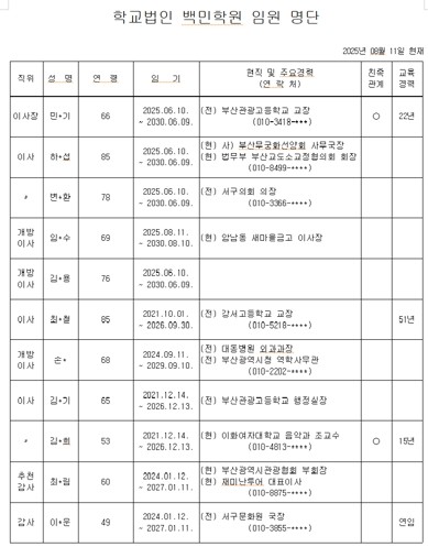 확인된 자료에 따르면 곽 의원실 선임비서관 A씨는 학교법인 백민학원의 감사로 등재돼 있다. 이 법인은 부산관광고등학교와 부산송도중학교를 운영하고 있으며, 두 학교 모두 곽 의원의 지역구에 위치한다.