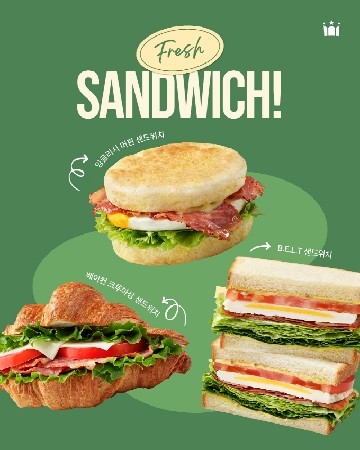 이번 신제품은 매장에서 주문 후 바로 제조하는 샌드위치 3종이다. 식빵, 크루아상, 잉글리시 머핀 등 다양한 빵을 활용해 구성했다.