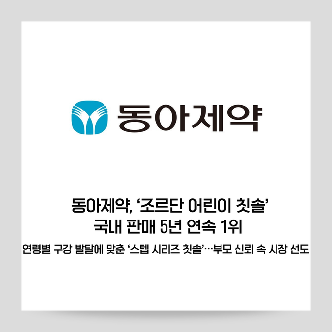 [카드] 동아제약 조르단, 어린이 칫솔 시장에서 5년 연속 선두 유지