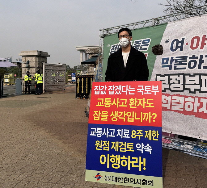 [프라임경제] 대한한의사협회 소속 한의사들이 교통사고 피해자의 치료 기간을 최대 8주로 제한하는 내용을 담은 '자동차손해배상 보장법' 하위법령 개정안에 반발하며 릴레이 1인 시위를 이어가고 있다. 한의계는 환자의 상태와 회복 속도를 고려하지 않은 획일적인 치료 제한이 진료권을 침해할 수 있다며 국토교통부에 개정안의 즉각 철회를 촉구했다.