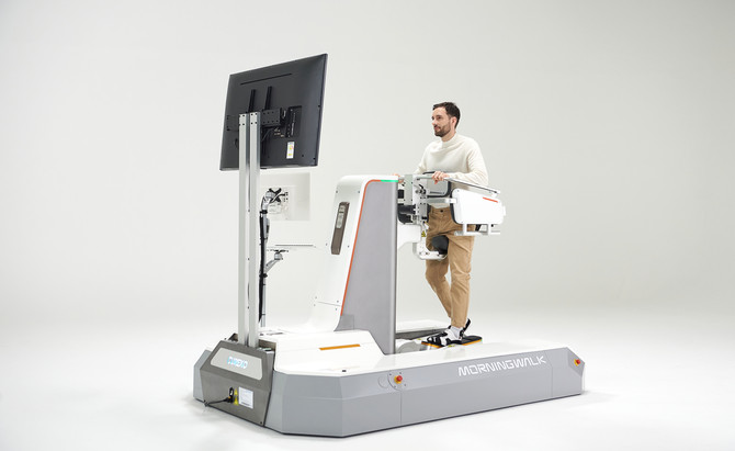 '모닝워크(MW-S200)'는 하지 근력 저하 및 보행 장애 환자의 재활 치료를 돕는 보행재활로봇으로 환자의 보행 패턴에 맞춘 보행 훈련을 통해 재활 치료 효율을 높일 수 있도록 설계된 장비다.