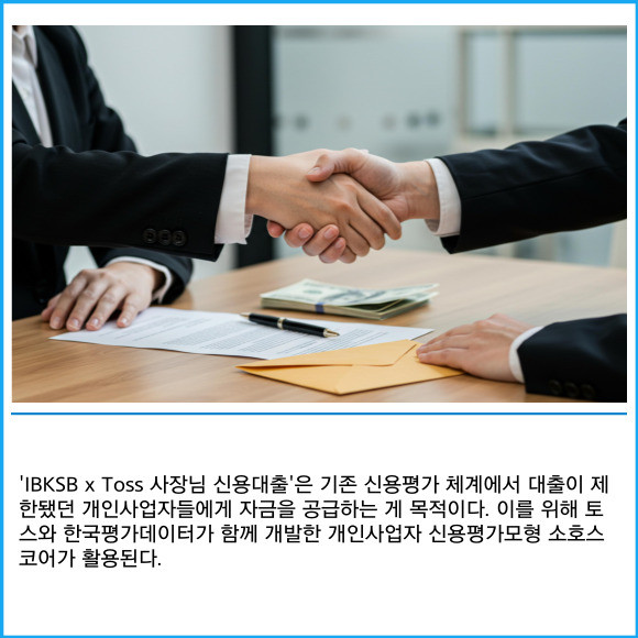 [프라임경제] IBK저축은행이 토스 신용평가모형을 활용한 'IBKSB x Toss 사장님 신용대출'을 출시한다고 10일 밝혔다.