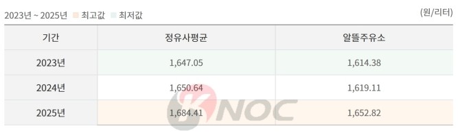 오피넷을 살펴보면 2023년부터 2025년까지 연간 정유사상표 전체와 비교해 알뜰주유소 전체의 휘발유 가격은 리터당 평균 31.93원 저렴했다. 경유로 보면 평균 32.26원 차이다.