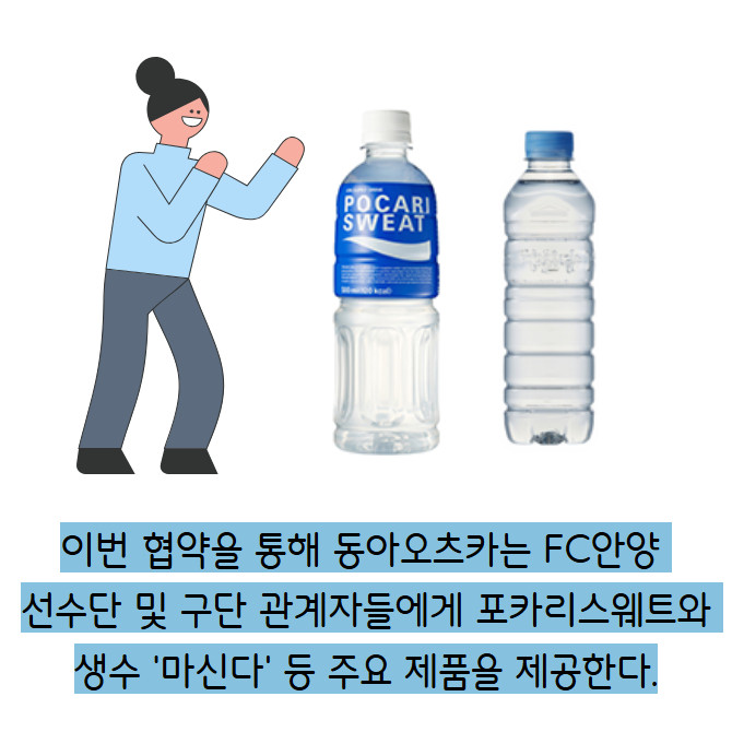 [프라임경제] 동아오츠카는 FC안양과 공식 후원 협약을 체결하고 선수단과 구단 관계자에게 포카리스웨트와 생수 '마신다' 등 주요 제품을 지원한다고 10일 밝혔다.