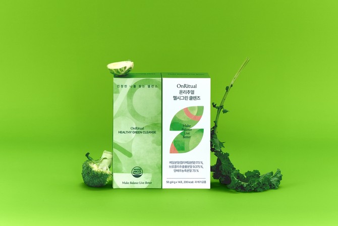 '헬시그린 클렌즈'는 온리추얼이 선보이는 첫 슈퍼푸드 복합 제품이다. 채소 섭취가 부족한 소비자를 고려해 프리미엄 원료를 사용한 '헬시그린 레시피'를 적용했다.