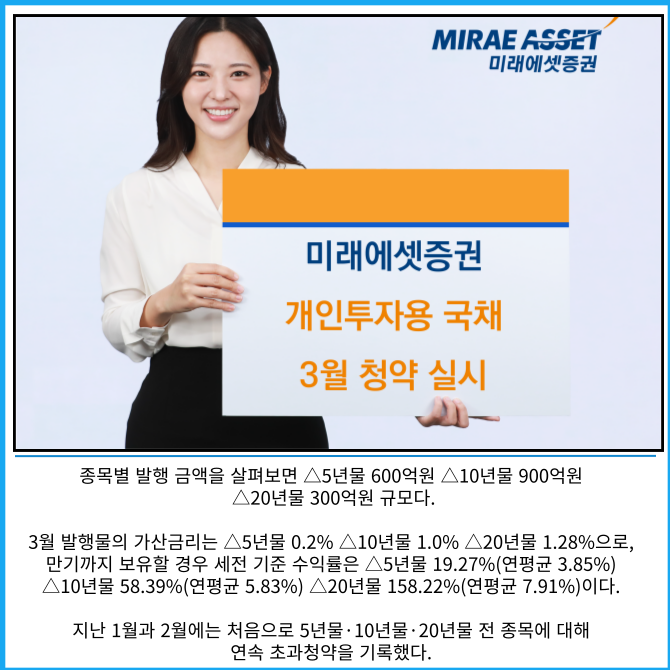 [카드] 미래에셋증권, 개인투자용국채 3월 청약 실시