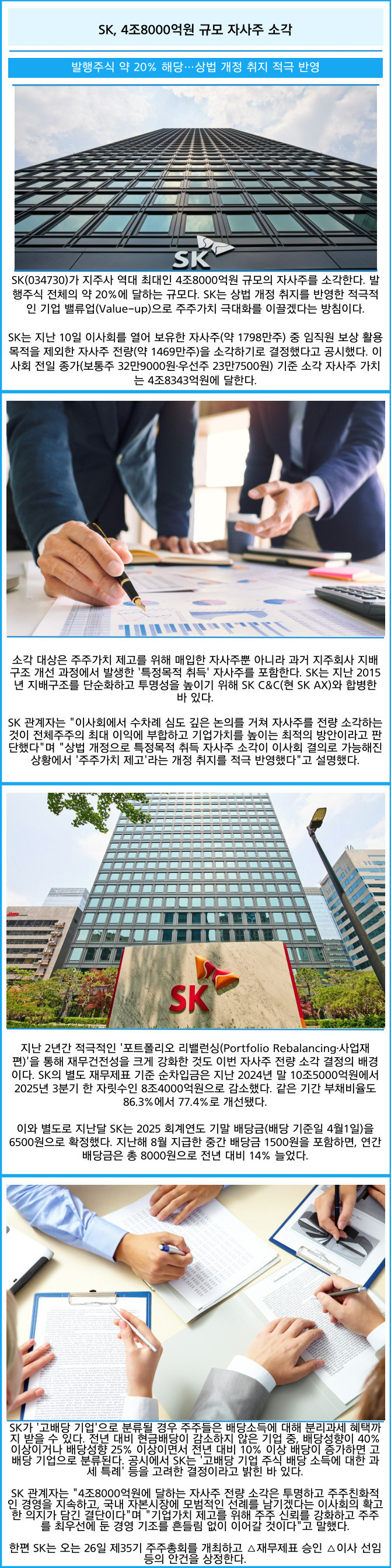 [프라임경제] SK(034730)가 지주사 역대 최대인 4조8000억원 규모의 자사주를 소각한다. 발행주식 전체의 약 20%에 달하는 규모다. SK는 상법 개정 취지를 반영한 적극적인 기업 밸류업(Value-up)으로 주주가치 극대화를 이끌겠다는 방침이다.