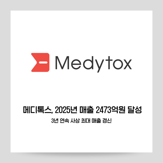[프라임경제] 바이오제약기업 메디톡스(086900)가 12일 실적공시를 통해 2025년 매출(연결기준)이 전년 대비 8% 증가한 2473억원을 달성했다고 밝혔다. 영업이익과 순이익은 각각 15%, 4% 감소한 172억원, 155억원을 기록했다.