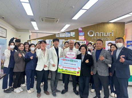 이날 남악 온누리내과의원은 지역사회 나눔문화 확산을 위해 '행복나눔스토어 2호점' 업무협약을 체결하고 현판식을 진행했다.