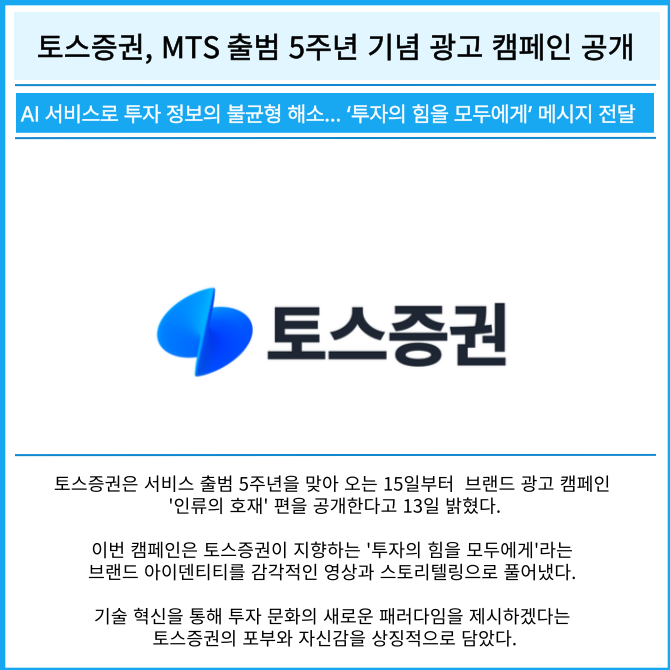 [카드] 토스증권, MTS 출범 5주년 기념 광고 캠페인 공개