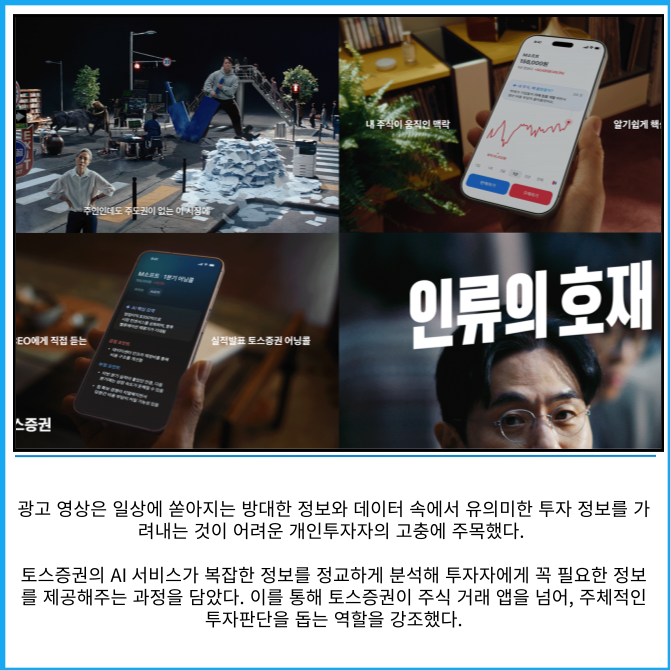 이번 캠페인은 토스증권이 지향하는 '투자의 힘을 모두에게'라는 브랜드 아이덴티티를 감각적인 영상과 스토리텔링으로 풀어냈다.