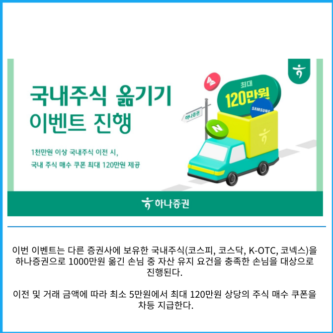 1000만원 이상 국내주식 이전 시, 국내 주식 매수 쿠폰 최대 120만원 제공