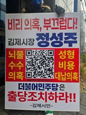 이런 가운데 김제 시민들의 반발도 이어지고 있다. 일부 시민들은 민주당 중앙당과 전북도당 앞에서 피켓 시위를 벌이며 정성주 시장의 후보 자격 박탈을 요구하고 있다.