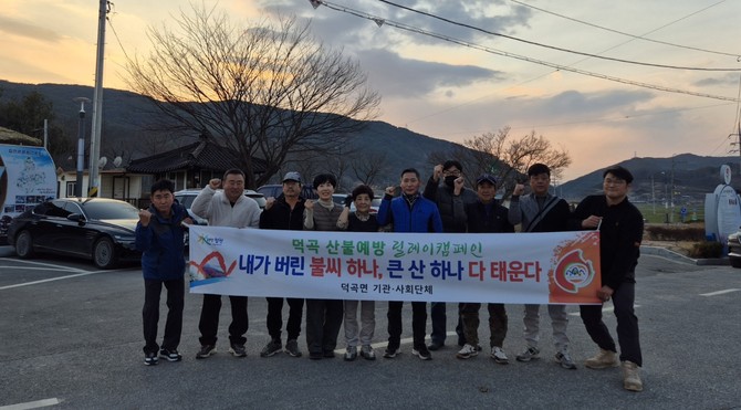 합천군 덕곡면 농업경영인회(회장 전갑진)은 12일 기관·사회단체가 주최가 돼 진행하는 '산불예방 릴레이 캠페인'에 동참했다고 13일 밝혔다.