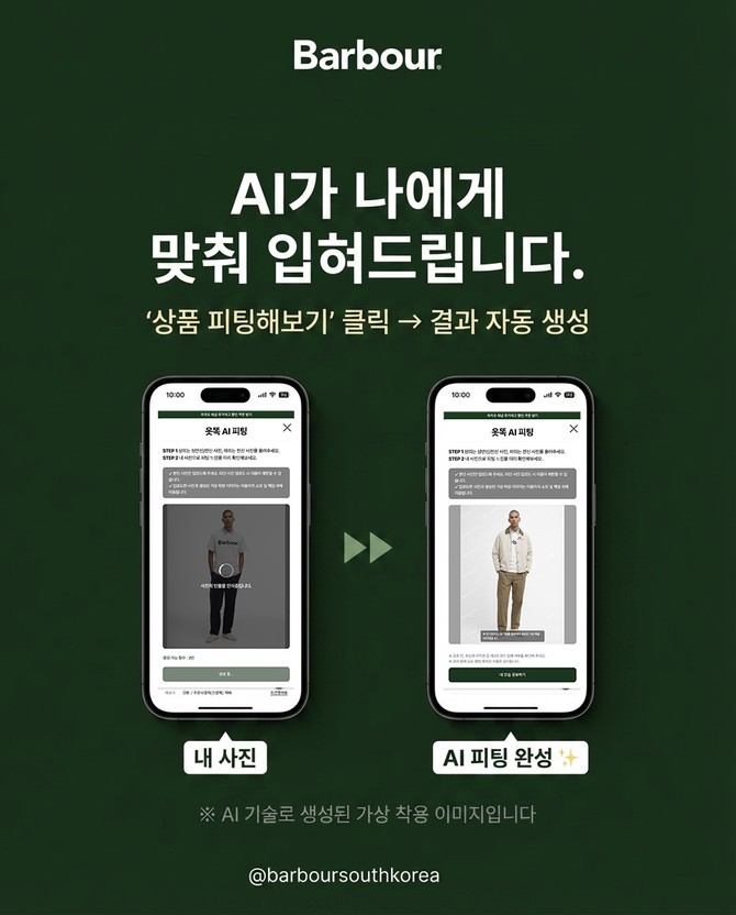 생활문화기업 LF가 수입·판매하는 영국 헤리티지 브랜드 Barbour(바버)가 AI 기반 버추얼 피팅 서비스를 도입했다. 온라인 쇼핑 환경에서 고객 경험을 강화하기 위한 조치다.