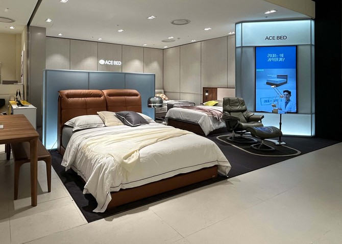 매트리스 라인업도 체험할 수 있다. '로얄에이스', '에이스 벨라-III' 등 제품을 배치했다. 매장 직원이 고객 체형과 수면 습관을 고려해 제품을 안내한다.