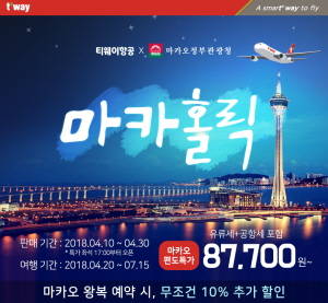 티웨이항공, 인천~마카오 노선 특가이벤트 시행