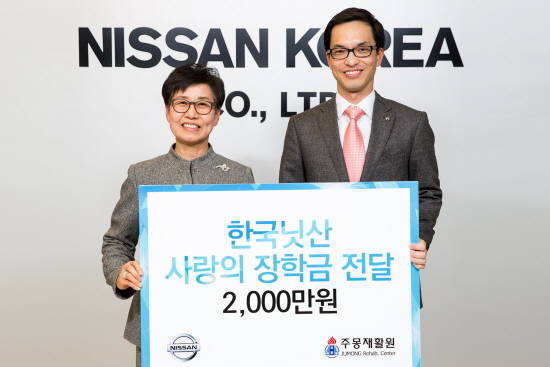 한국닛산, 사랑의 장학금 2000만원 주몽재활원에 전달