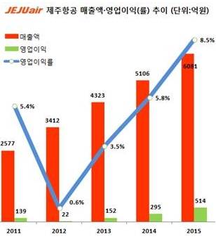 '역대 최고실적' 제주항공, 2015년 영업익 전년比 74.2%↑