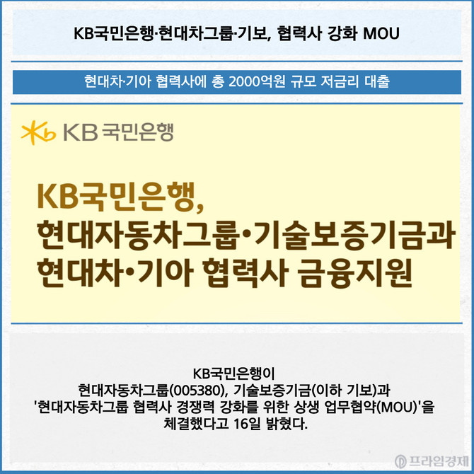 [카드] KB국민은행·현대차그룹·기보, 협력사 강화 MOU