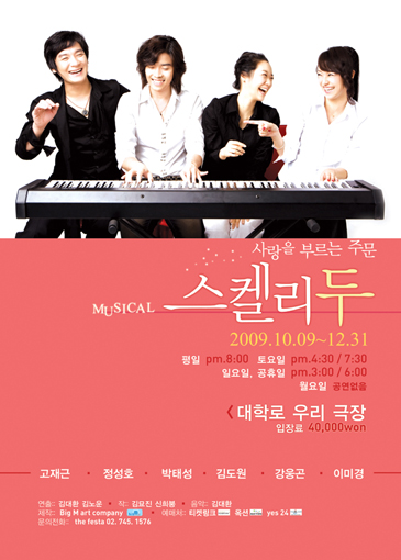 따뜻하고 유쾌한 로맨틱 뮤지컬, 잔잔한 감동과 함께 다가오는 뮤지컬 '스켈리두'는 오는 10월 9일부터 12월 31일까지 대학로에 위치한 우리극장에서 공연될 예정이다.