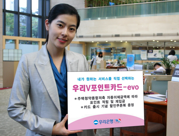 한편, 우리은행은 우리V포인트카드-evo 출시를 기념해 다음달 16일까지 카드를 발급한 고객에게 불고기브라더스 1인분 무료 제공, 파파존스 5000원 할인, 동양리조트 객실 할인, 영랑호CC 그린피 할인쿠폰 등 외식/레저 등 12개 브랜드 쿠폰북을 제공한다.