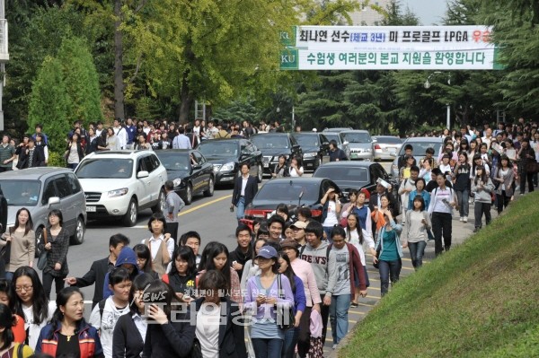 [프라임경제]26일 오후 서울 광진구 화양동 건국대학교에서 치러진 2010학년도 수시1차모집 인문계 논술고사를 치른 수험생들이 학부모와 함께 귀가하고 있다. 이날 건국대 주변은 수험생 8000여명과 학부모들이 타고 온 차량들로 큰 혼잡을 빚었다. 건국대 자연계 논술고사는 27일 오전 실시된다.