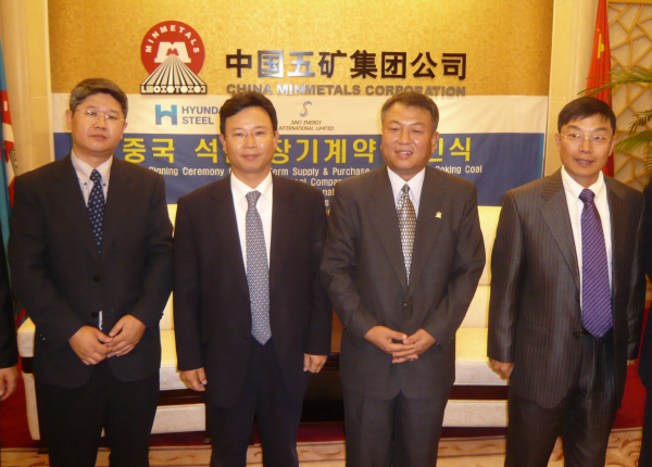 현대제철은 지난 28일 중국 현지에서 중국 4대 석탄 수출업체인 민메탈스(Minmetals)와 2009년부터 2012년까지 3년간, 연간 최대 15만톤의 제철용 유연탄 구매와 공급계약을 체결했다.
